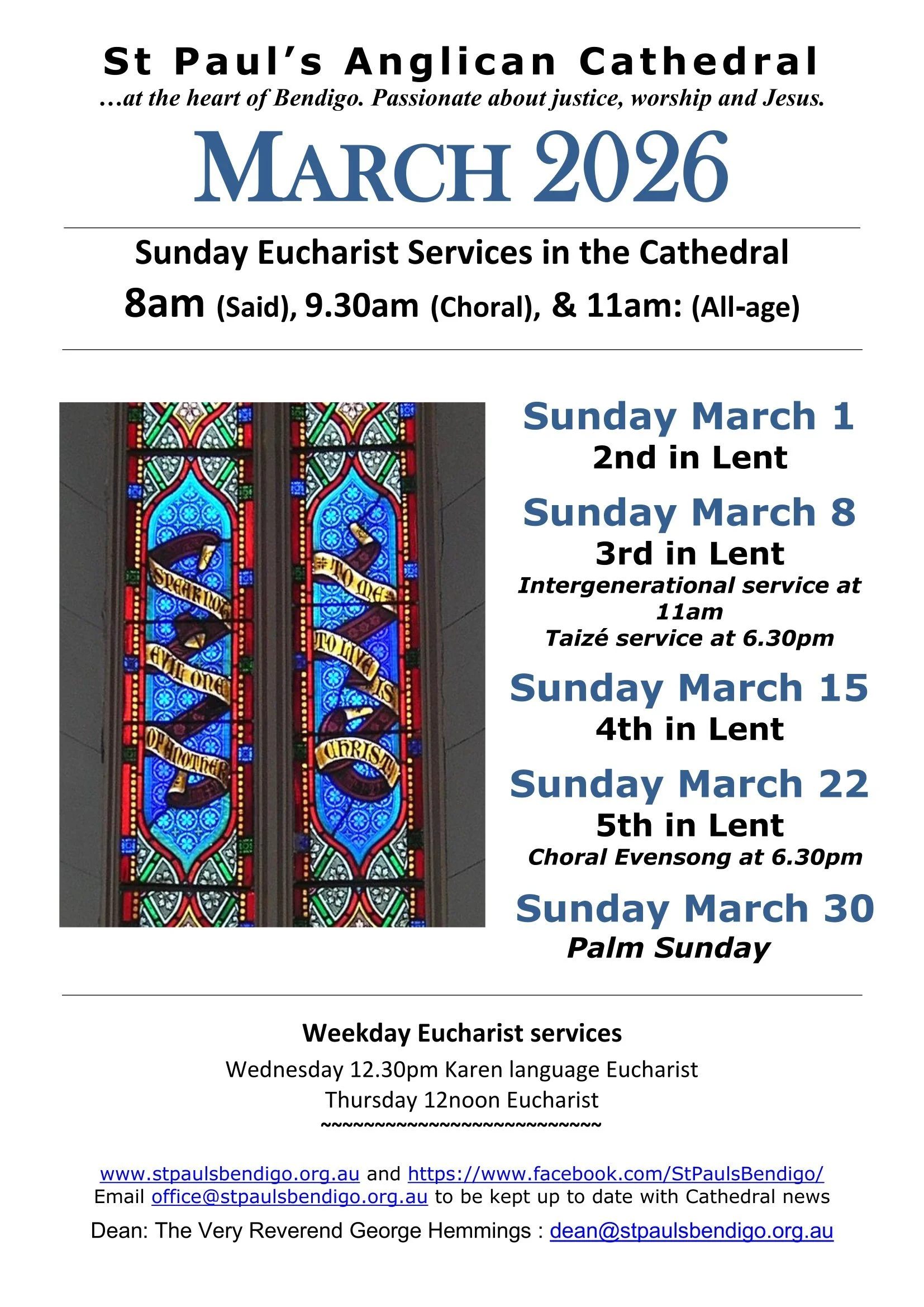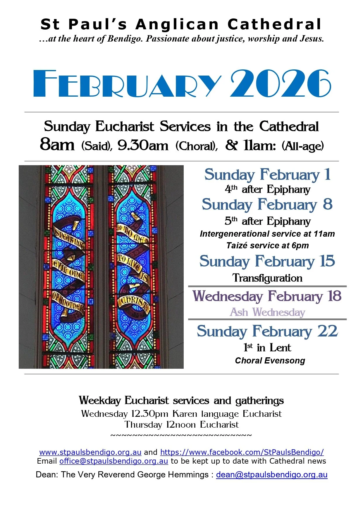 For other Events in the Cathedral - Please check the Upcoming Events page for details.